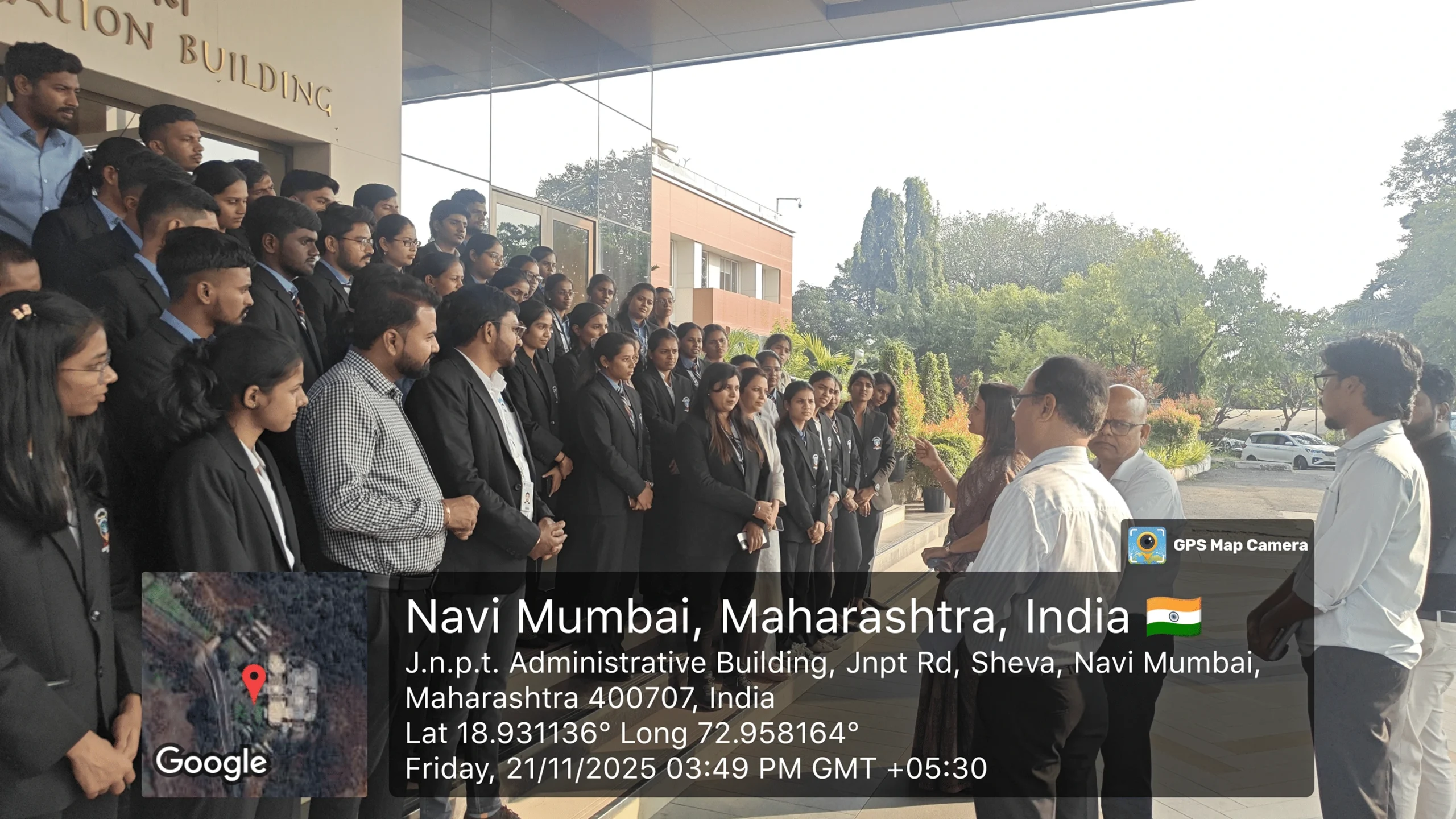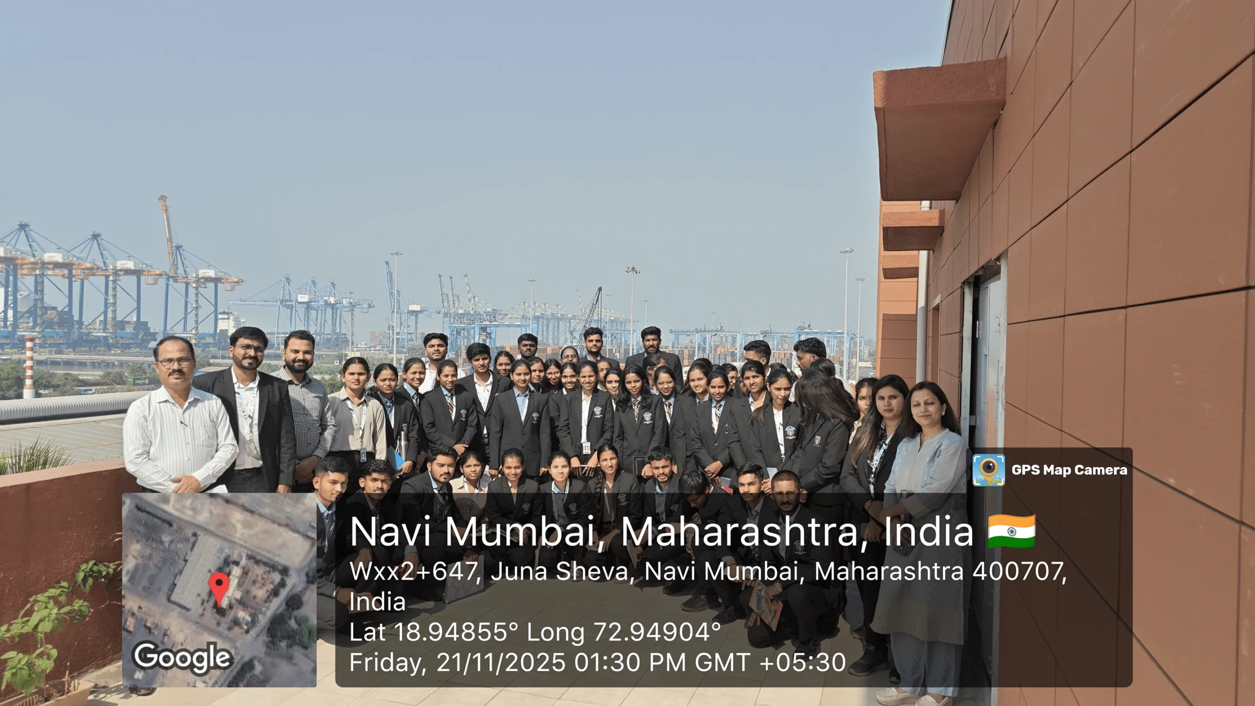 As part of the academic curriculum and to enhance industry exposure for MBA students, an industrial visit to the Jawaharlal Nehru Port Authority (JNPA) was organized on 21st November 2025. The purpose of the visit was to provide students with practical insights into logistics operations, port management, supply chain processes, and real-time cargo handling systems.