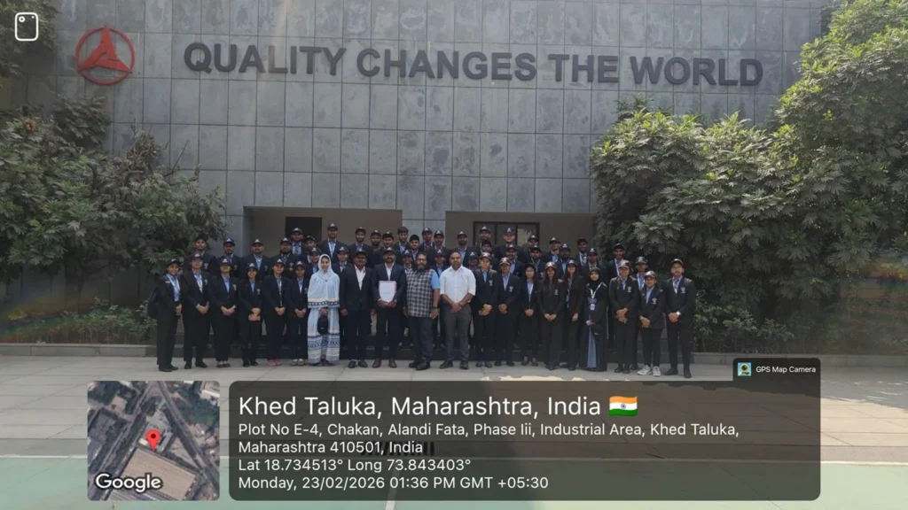 The industrial visit to SANY Heavy Industry India Pvt. Ltd., Chakan MIDC was highly informative and beneficial for MCA students. It helped students to understand the practical implementation of automation technologies and real-time industrial manufacturing processes. The visit also enhanced their knowledge about modern production systems and provided valuable exposure to the working environment of a multinational manufacturing organization.