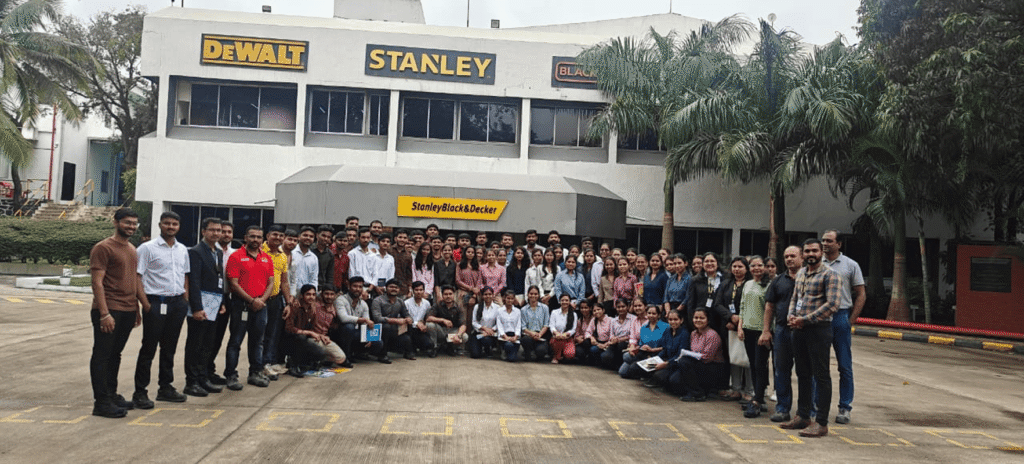 The primary objective of this industrial visit was to provide the MBA students with practical exposure to organizational processes, human resource practices, safety measures, and operational excellence followed at Stanley Black & Decker. The visit aimed at bridging the gap between academic learning and industrial practices.