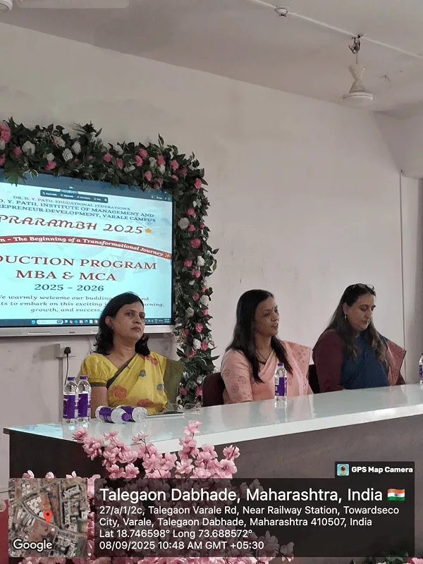 Induction Program 2025 – Dr. D. Y. Patil Institute of Management & Entrepreneur Development (DYPIMED), Varale, Pune