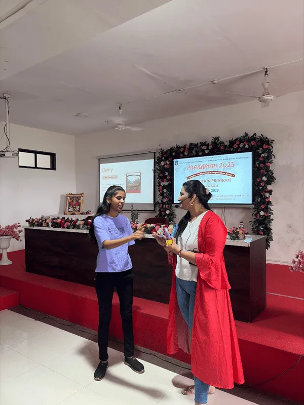 Engaging Ice-Breaking Activities: The “Paper Game” conducted by Dr. Amruta Shyamkumar and Mrs. Nuzat Sheikh encouraged teamwork, creativity, and peer interaction, fostering early bonding among students.